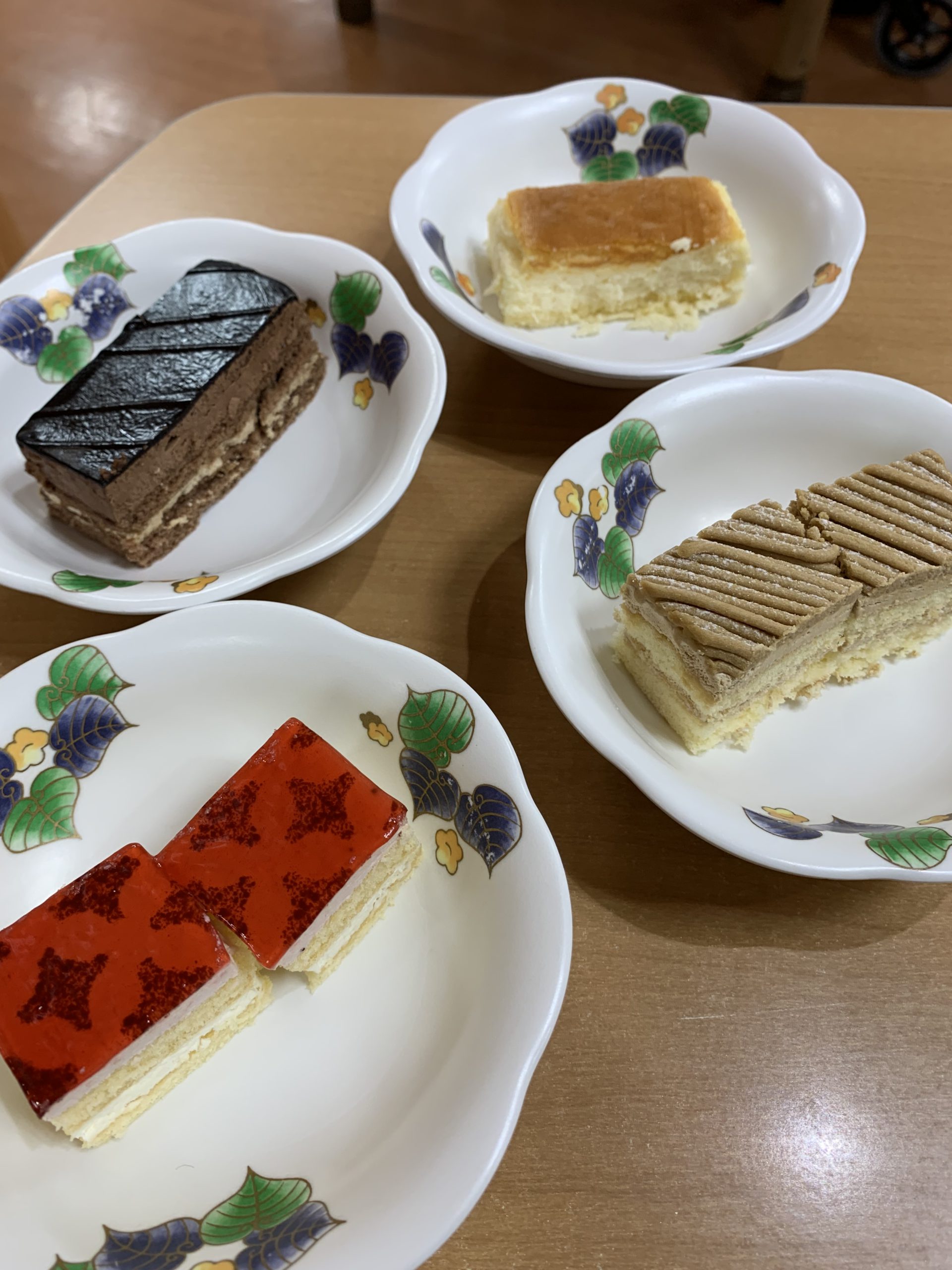 さて、11月の行事ではケーキバイキングを行いました🍰ショートケーキ、チョコレートケーキ、チーズケーキ、マロンケーキからそれぞれお好きなケーキを召し上がりました💞