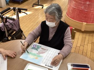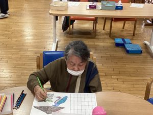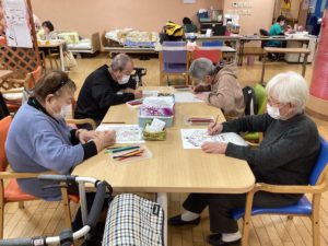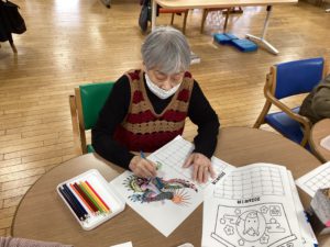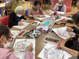続いては安定の「塗り絵🖍️」です毎月、翌月のカレンダーの絵を塗っていただいておりますが、皆様集中しだすと会話が止まりそれぞれの絵と向き合いそれぞれ違った味わいの色味を表現してくださいます!