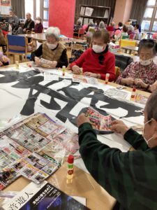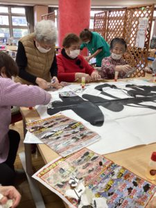 最後は新年のホールに飾らせていただく「大貼り絵」をコツコツと貼っていただいている様子です、まだ未完成みたいなので完成が楽しみな作品です🙂🙂