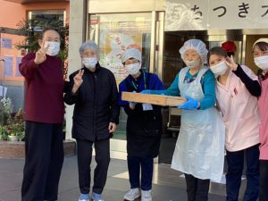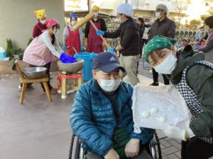デイサービスの利用者様にもお餅をついていただいたり、お餅を丸めていただいたりと沢山のご協力いただきました!