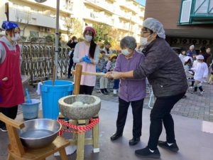 当日は地域の皆様にもご参加いただき、準備から餅つきまで沢山のお力添えをいただきました。