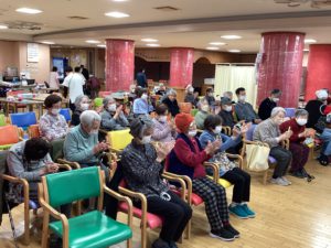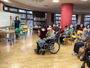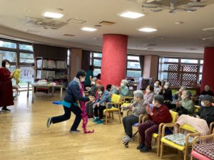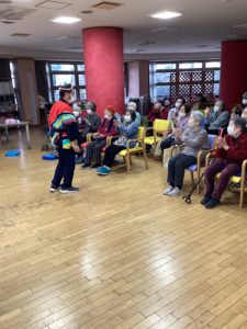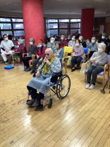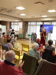 観客の利用者様も楽しそうに手拍子してくださったり、時には大笑いされてる姿も見られ、とても楽しいお昼の時間となりました!!