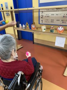 ボールを投げて、だるまを倒したり🎯