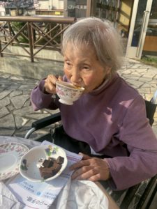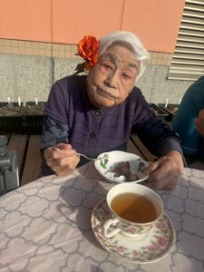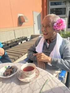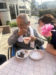 施設の外でティータイムです🫖✨