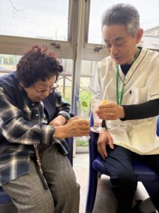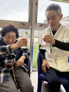 職員さんと一緒にかんぱーい🥂