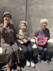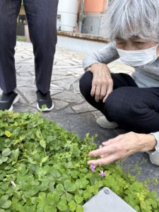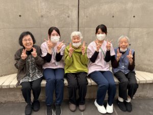 新人研修に来られた新入職員の方々とも一緒に外に出て散歩をしました。