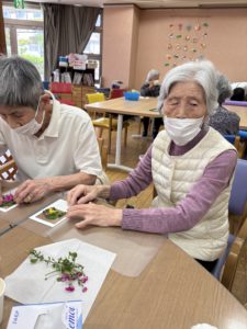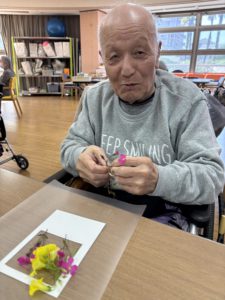 クラフトで、押し花を作りました!皆さん、素敵な押し花ができて喜ばれてました😍