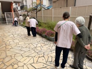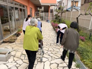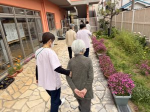 デイサービスでは、施設の庭や隣の稲田公園にお散歩に出るなど、体を動かして頂いています☺️