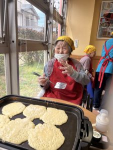 皆さん上手にひっくり返していい焼き色がついて、おいしそうです!!✨