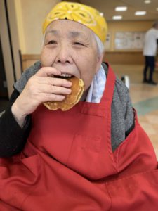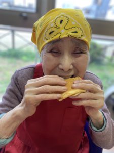 天気もよくて公園を眺めながら、出来上がったどら焼きを頬張っておられました😋