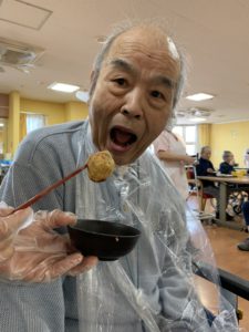 フロアでたこ焼きを焼き、出来立てを皆さんに食べていただきました🐙