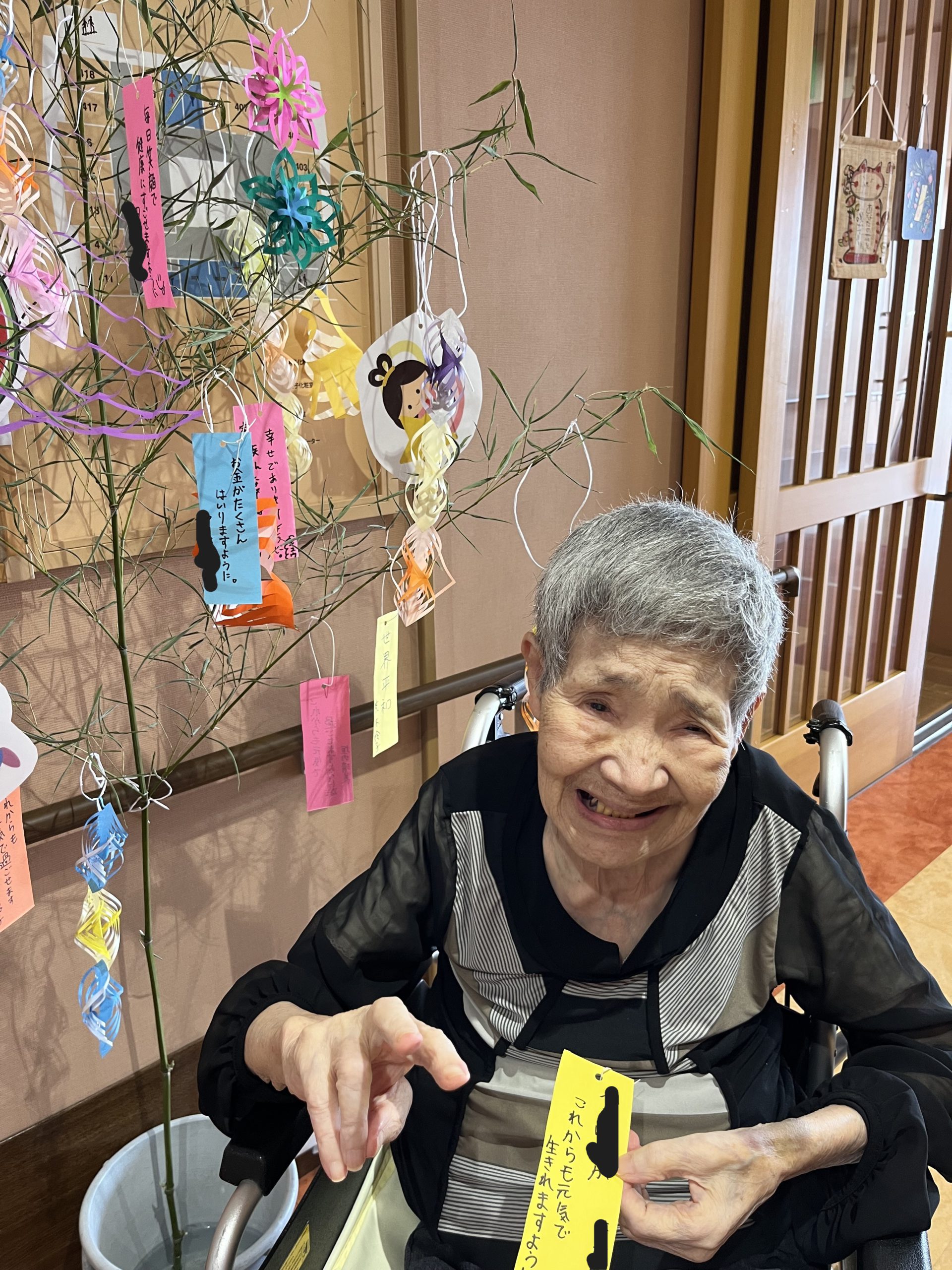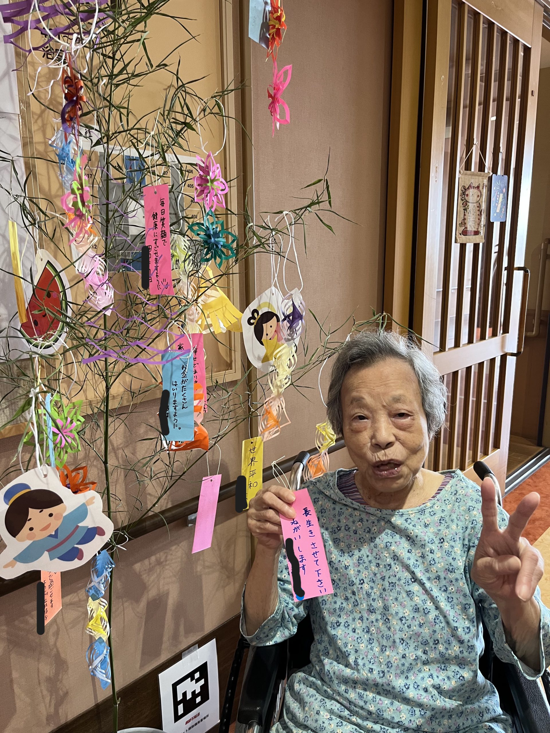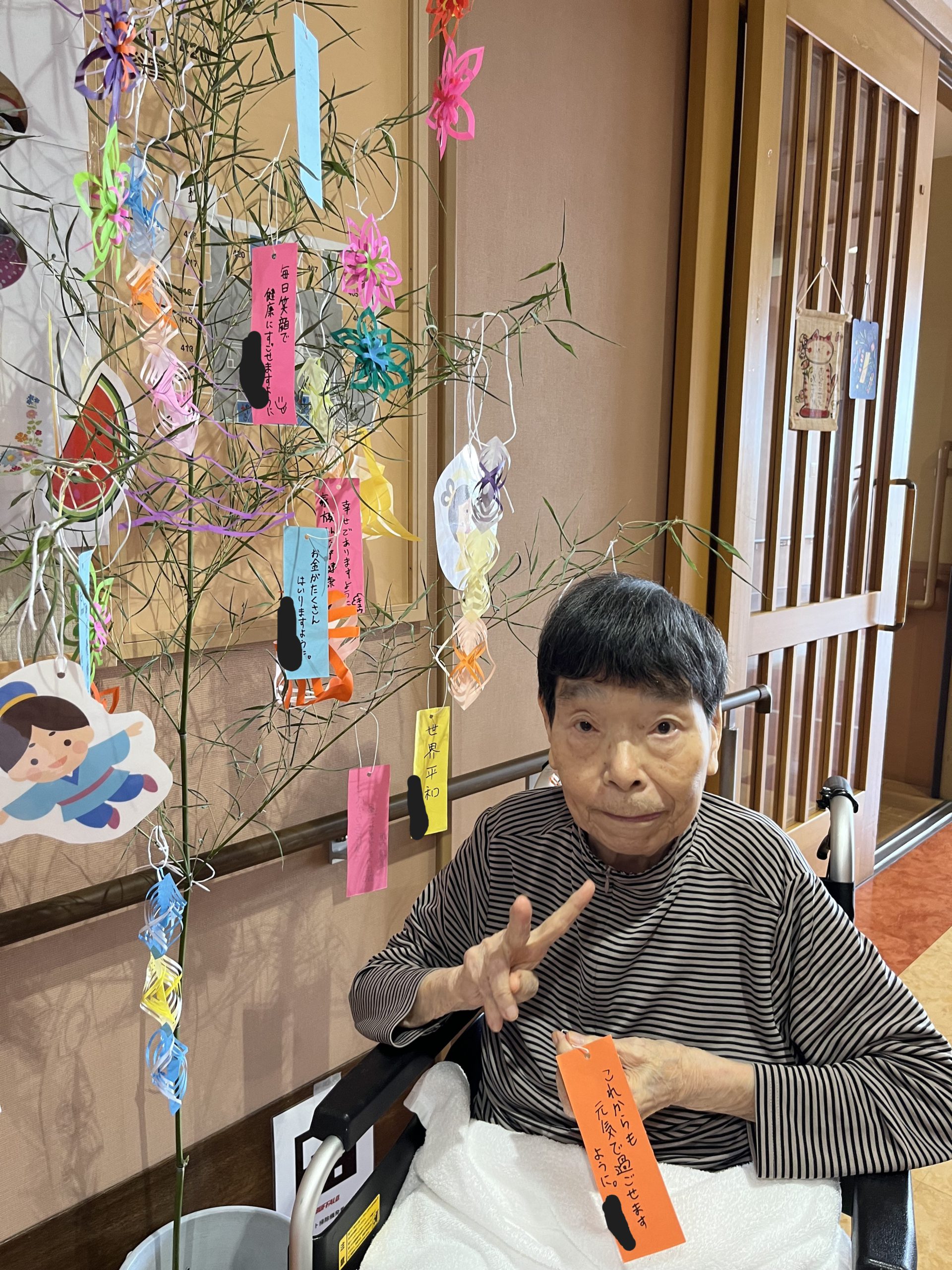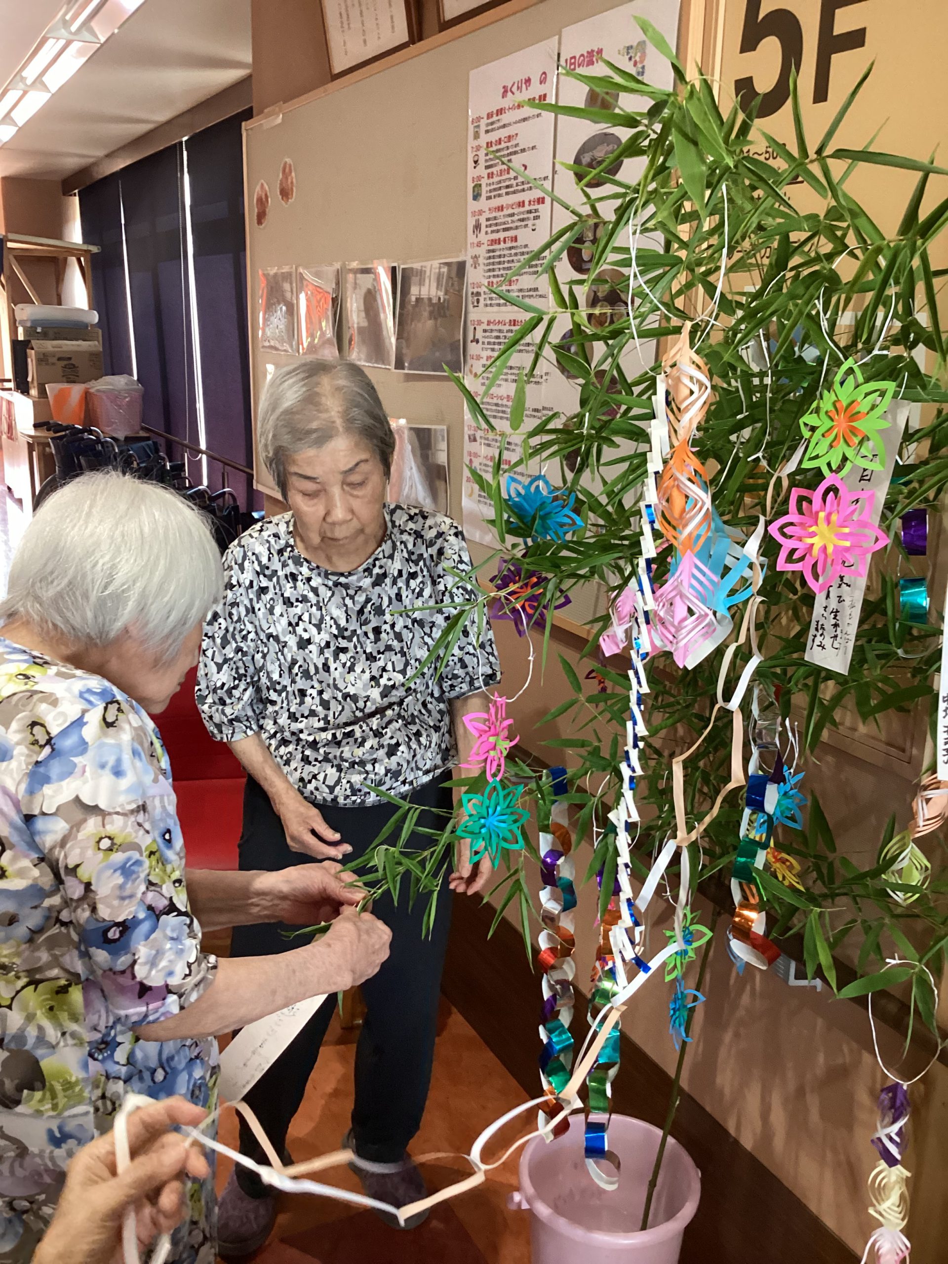 七夕の笹は、ご利用者様に飾りつけをして頂きました✄
