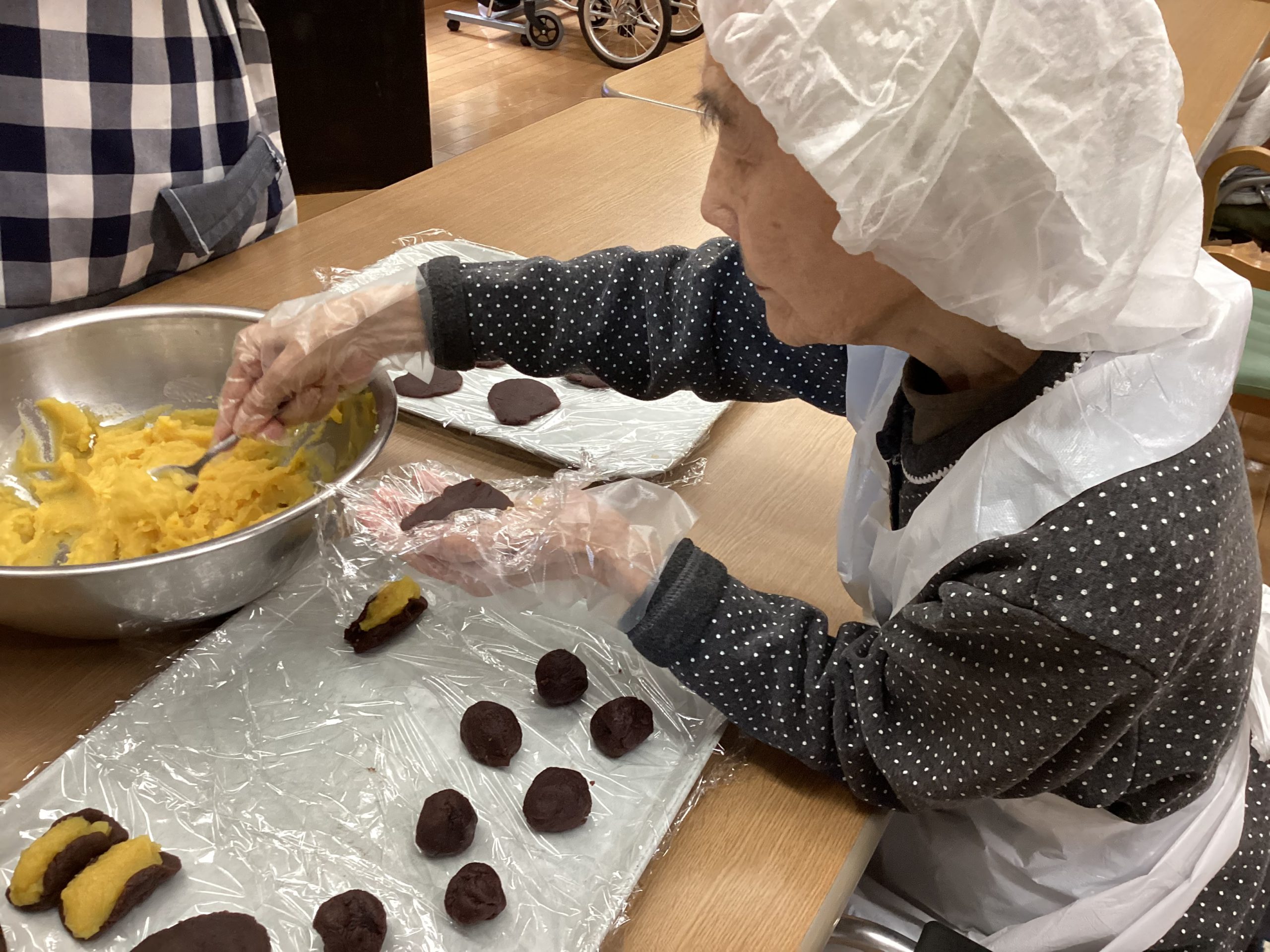 今回は、さつま芋の茶巾しぼりを召し上がって頂きました。