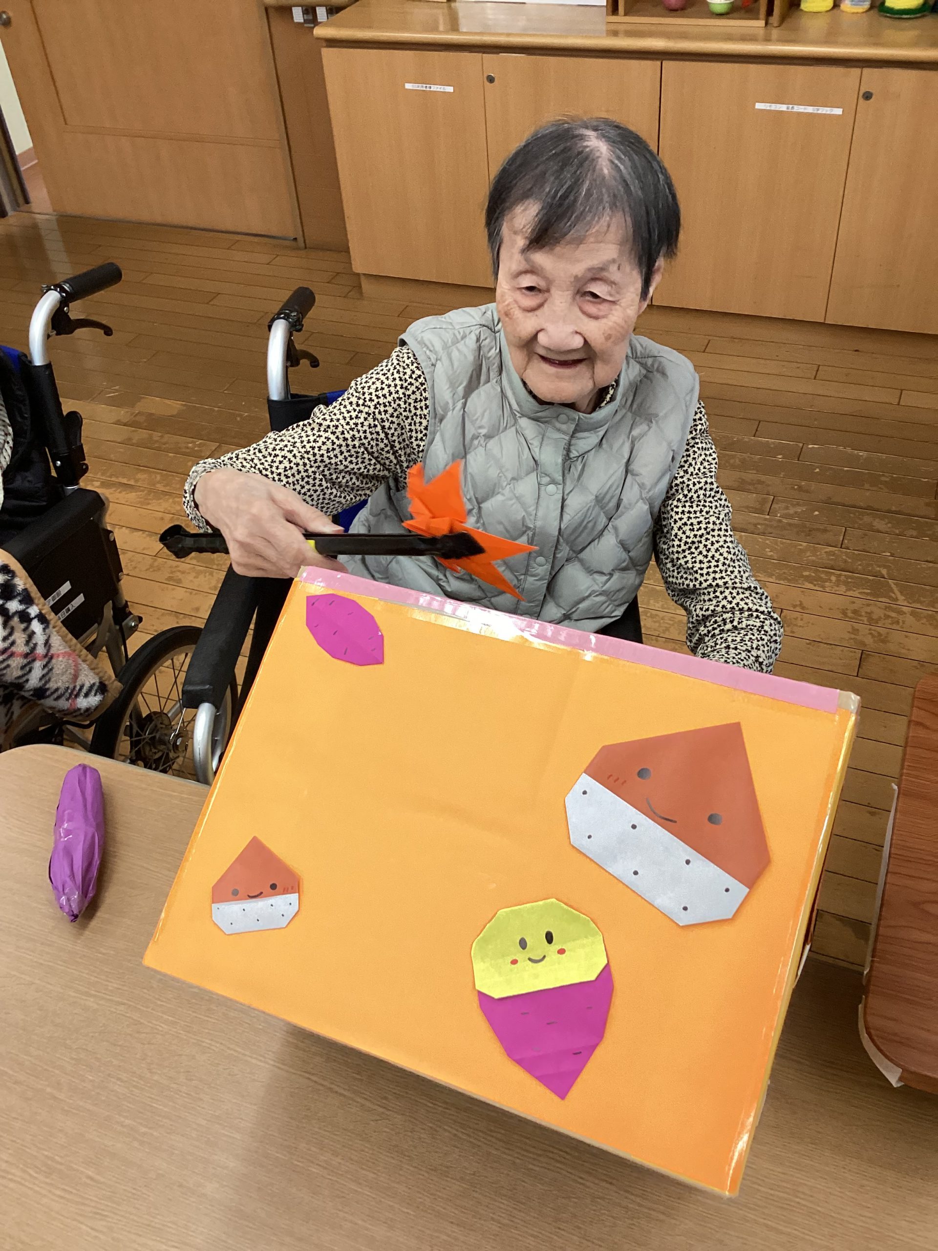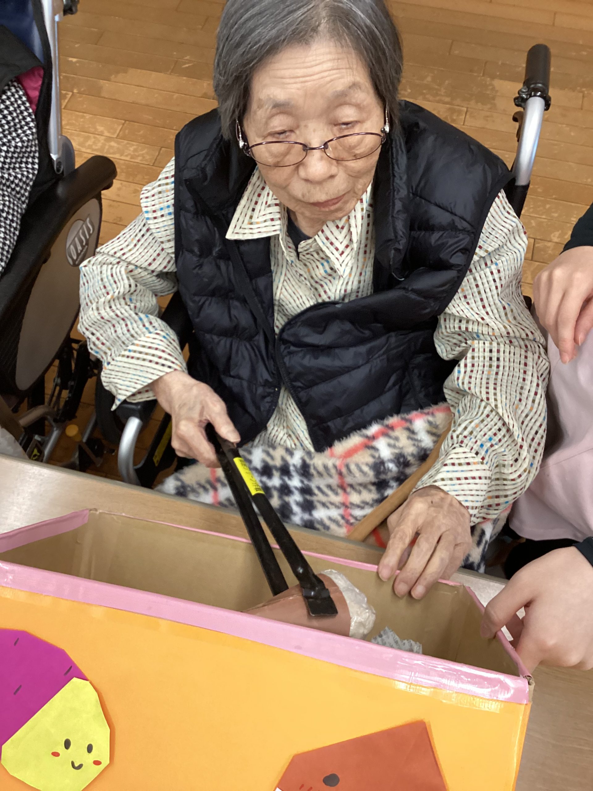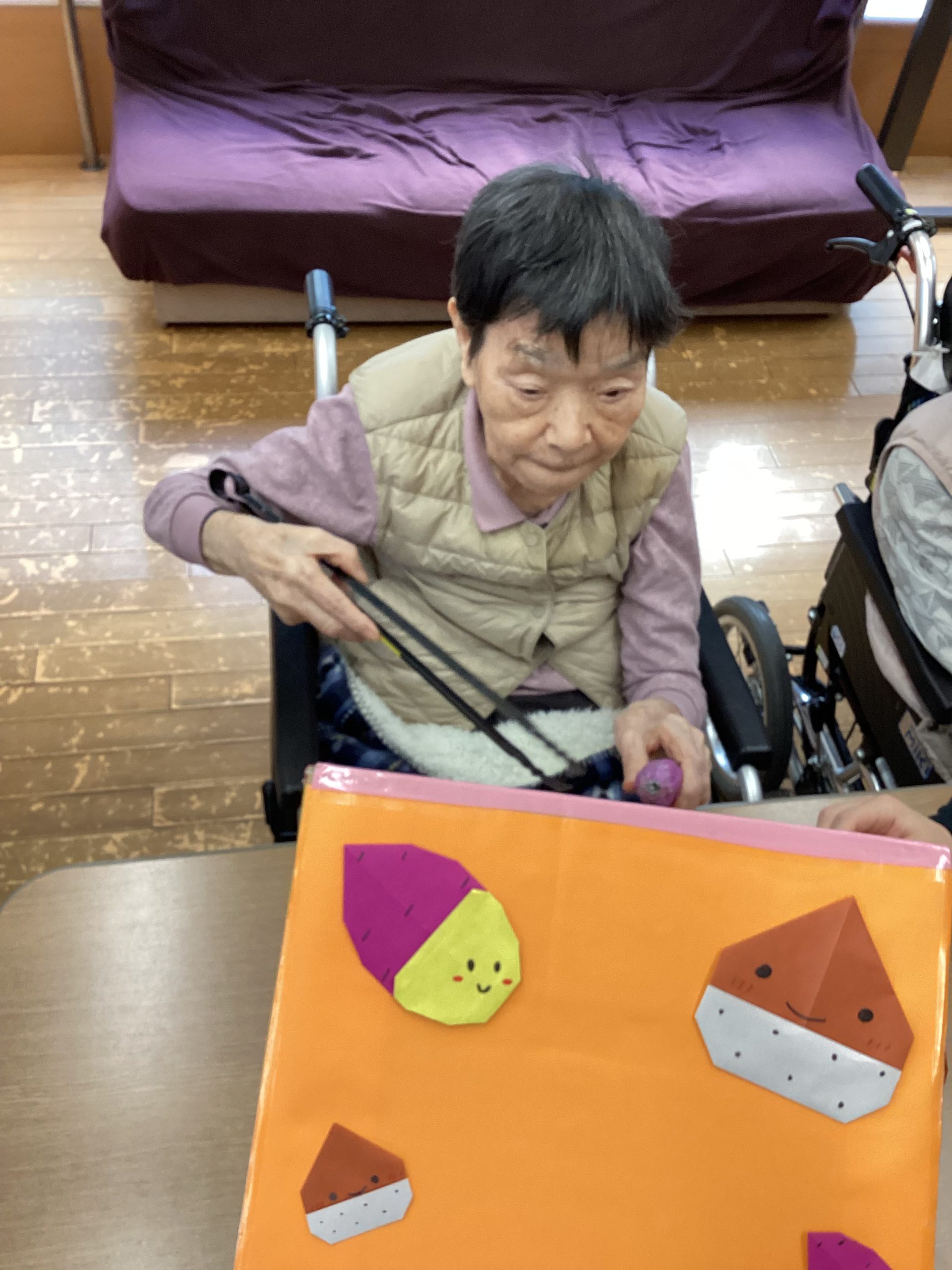 ご利用者様にお芋と栗をトングで探して頂きました😄