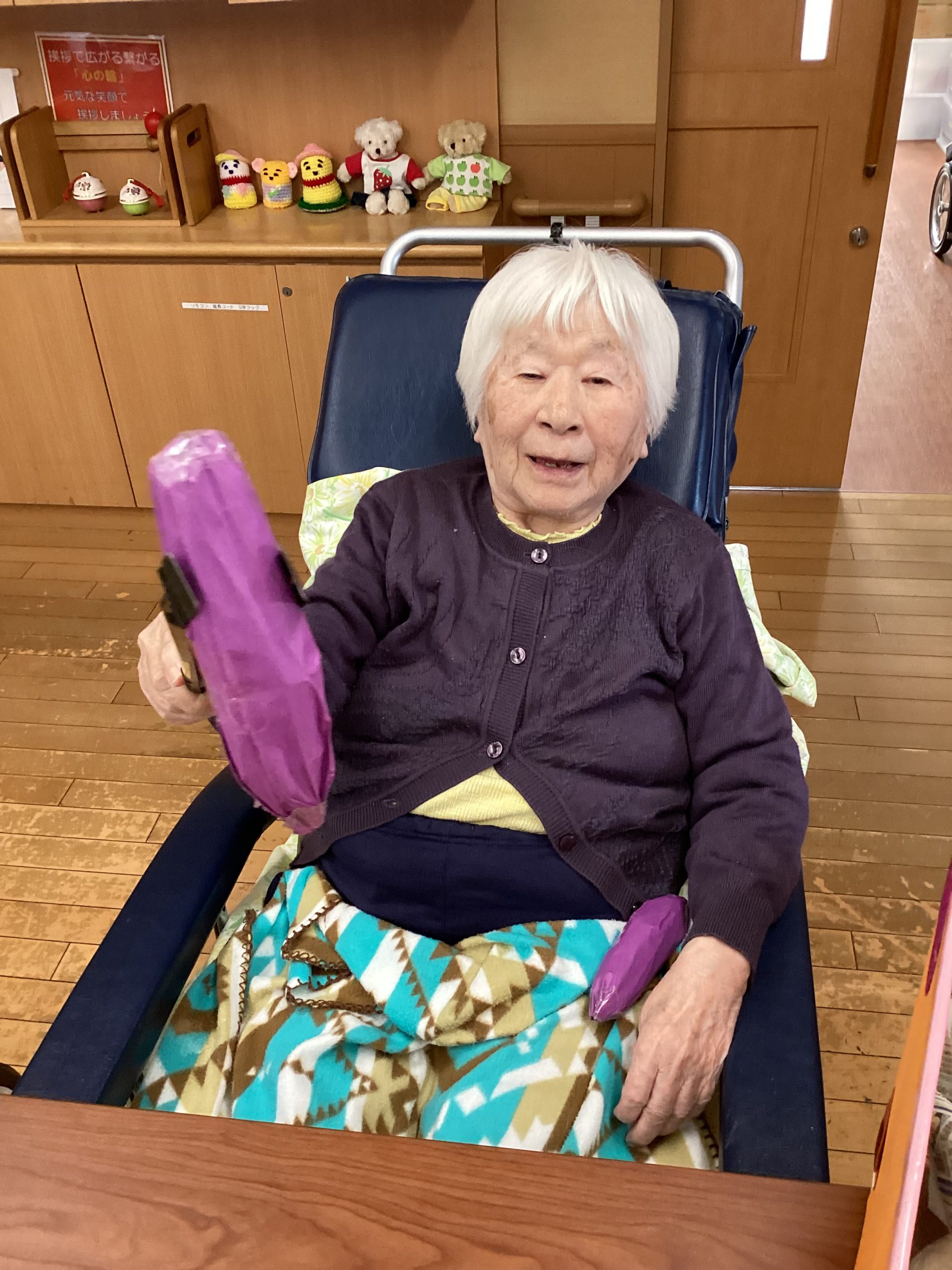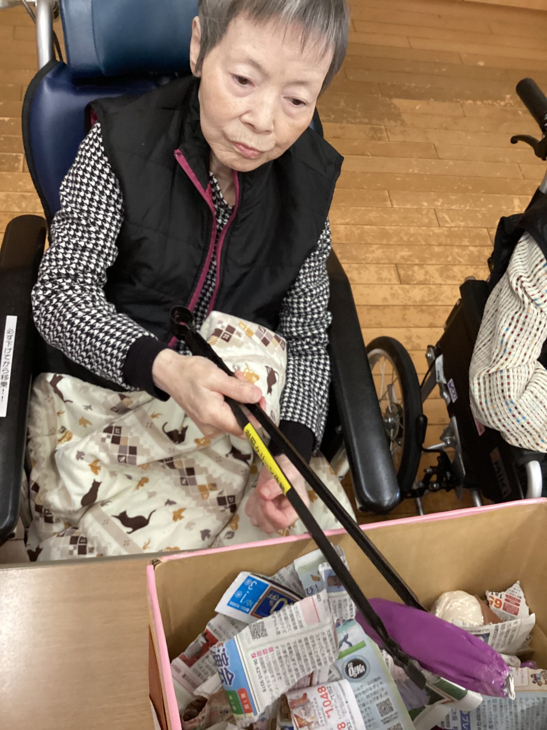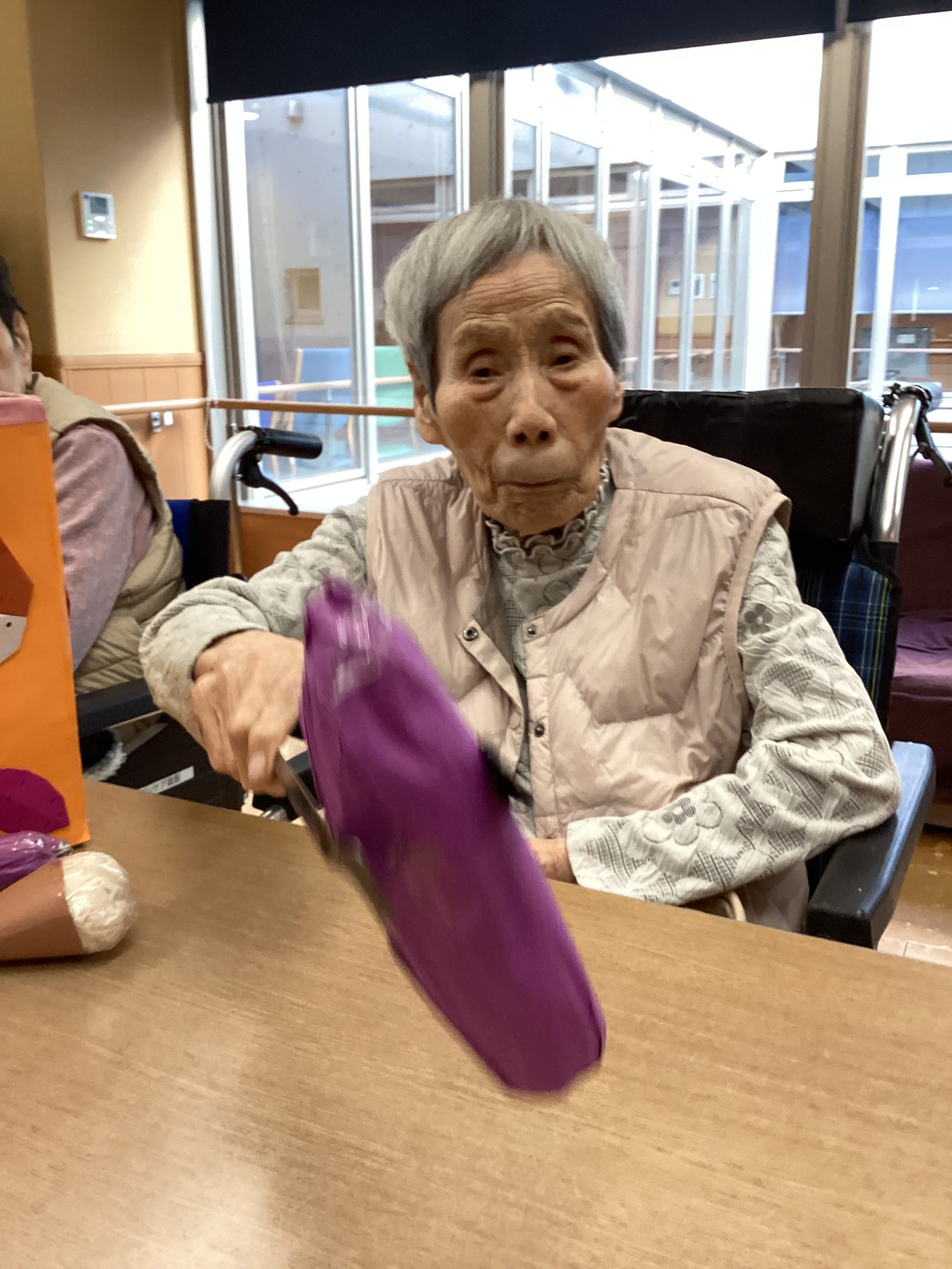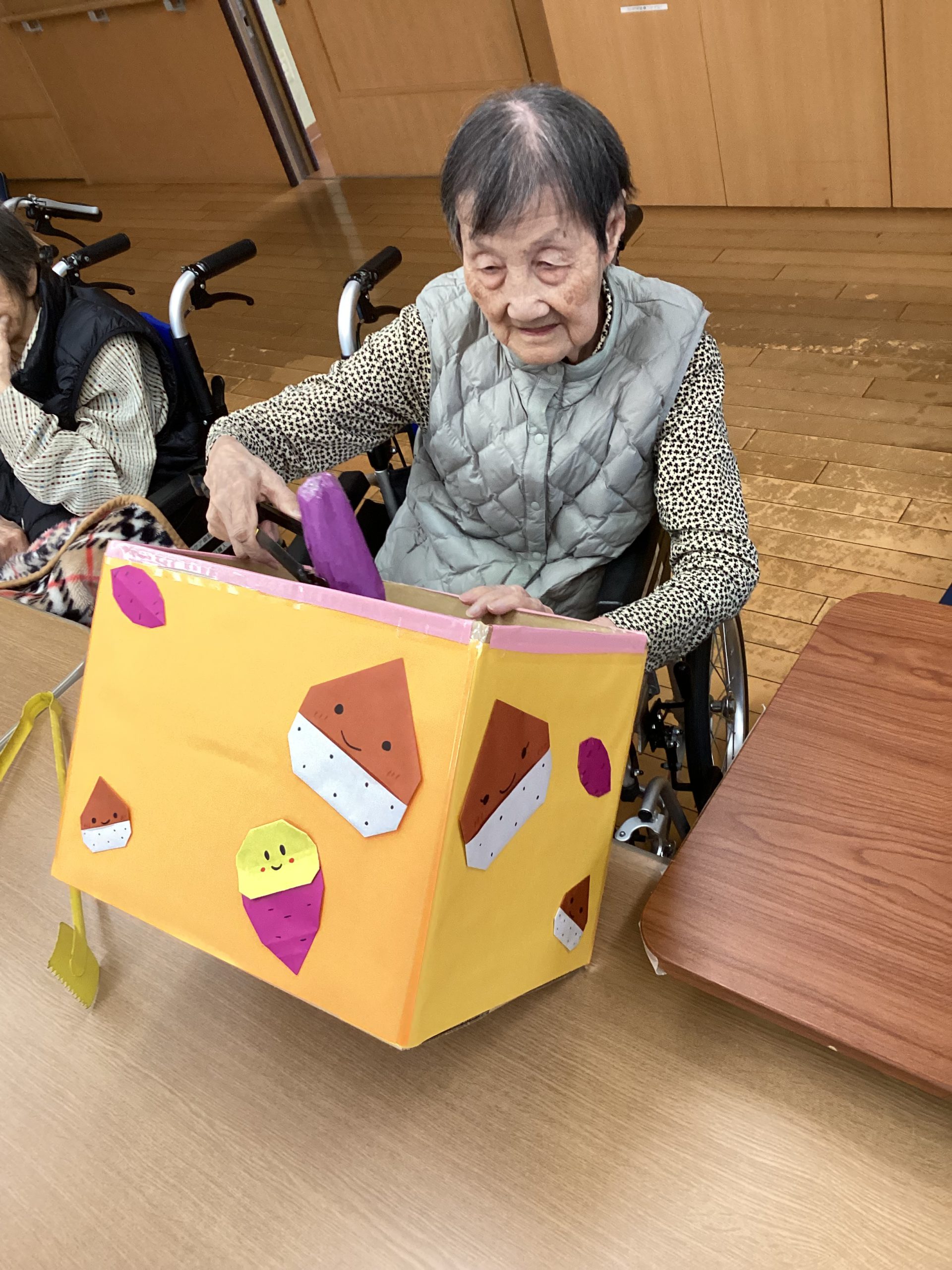 ご利用者様にお芋と栗をトングで探して頂きました😄