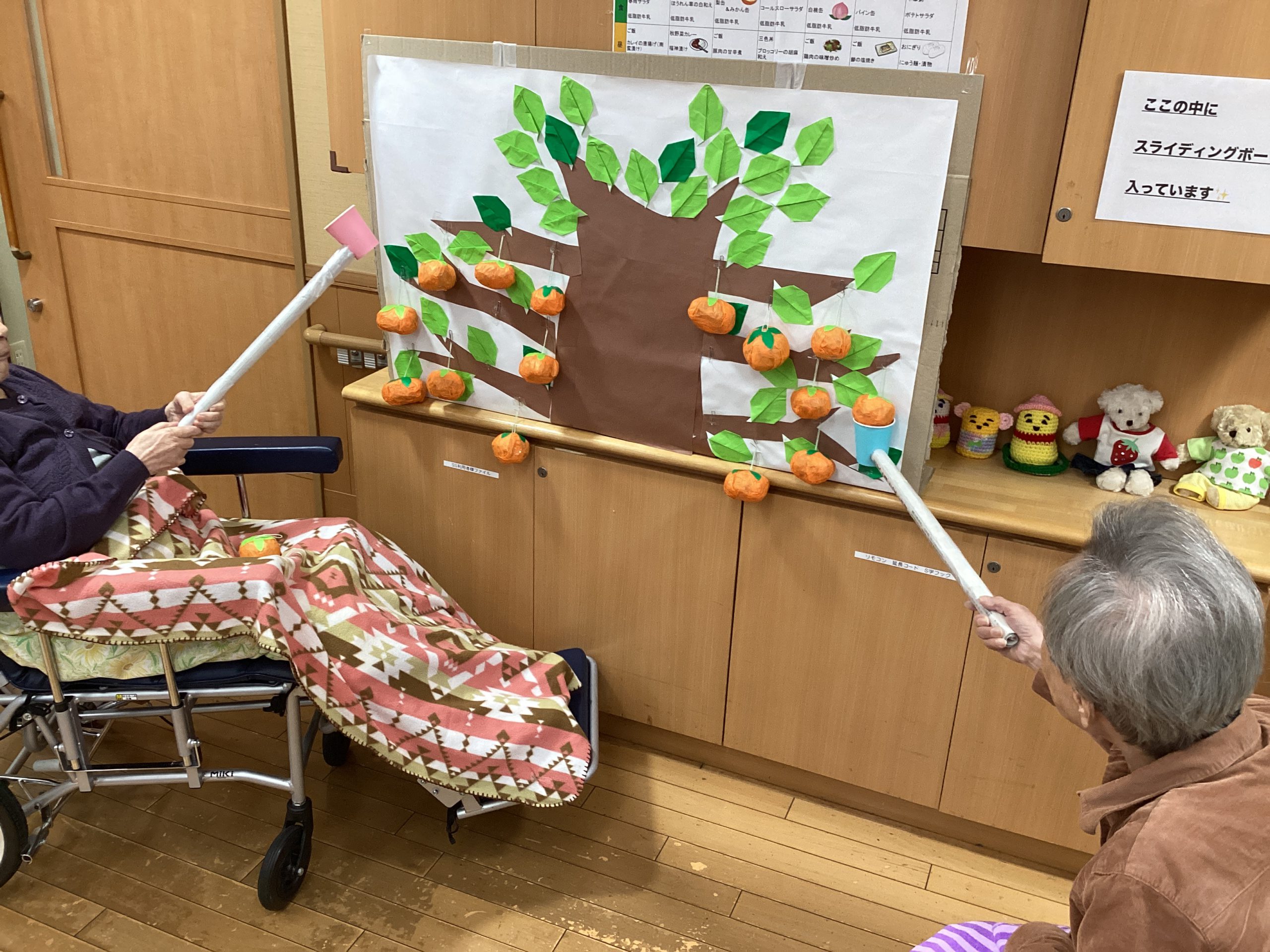 柿狩りをイメージしたレクリエーションを考えて実施しました🎶