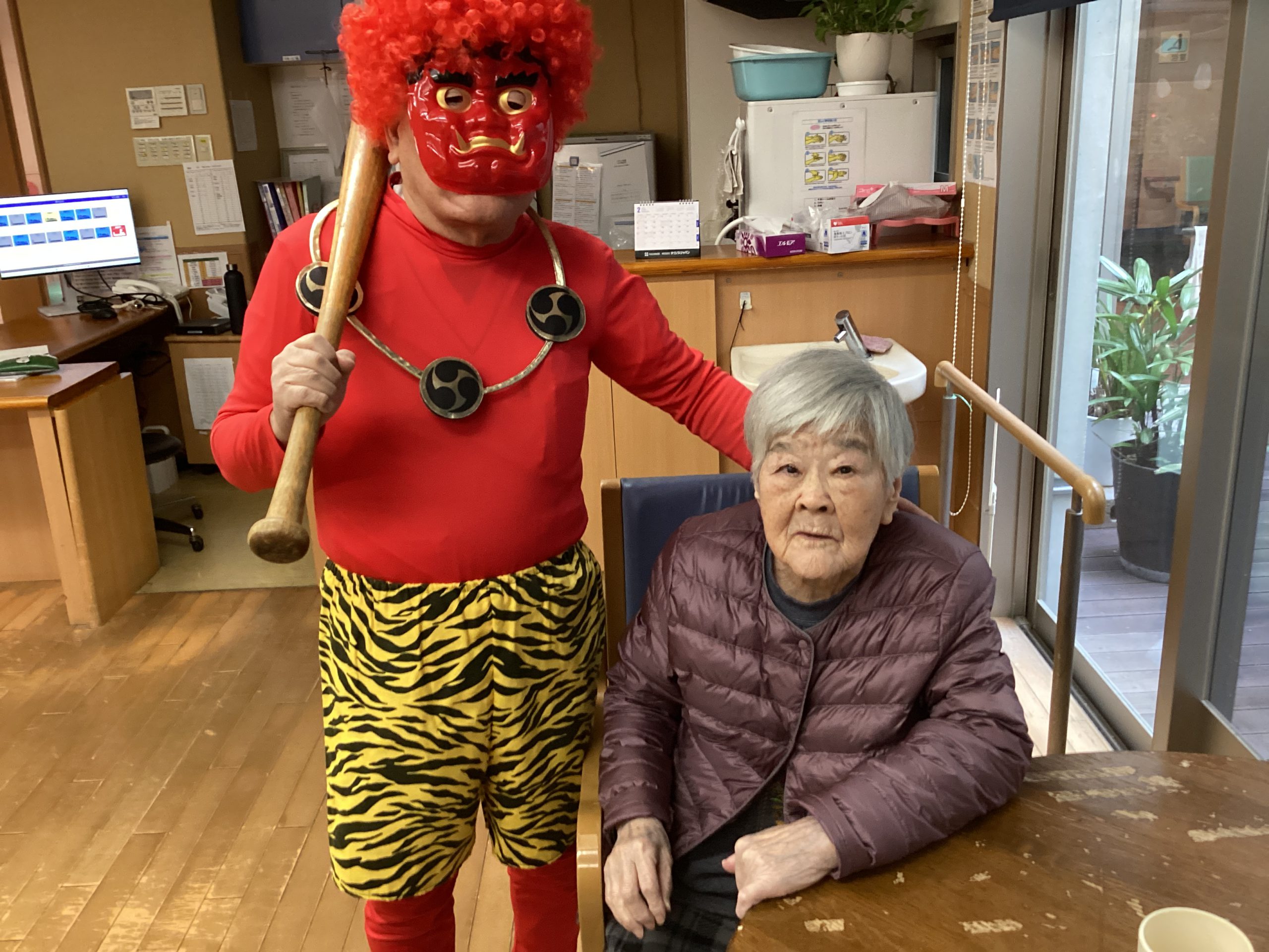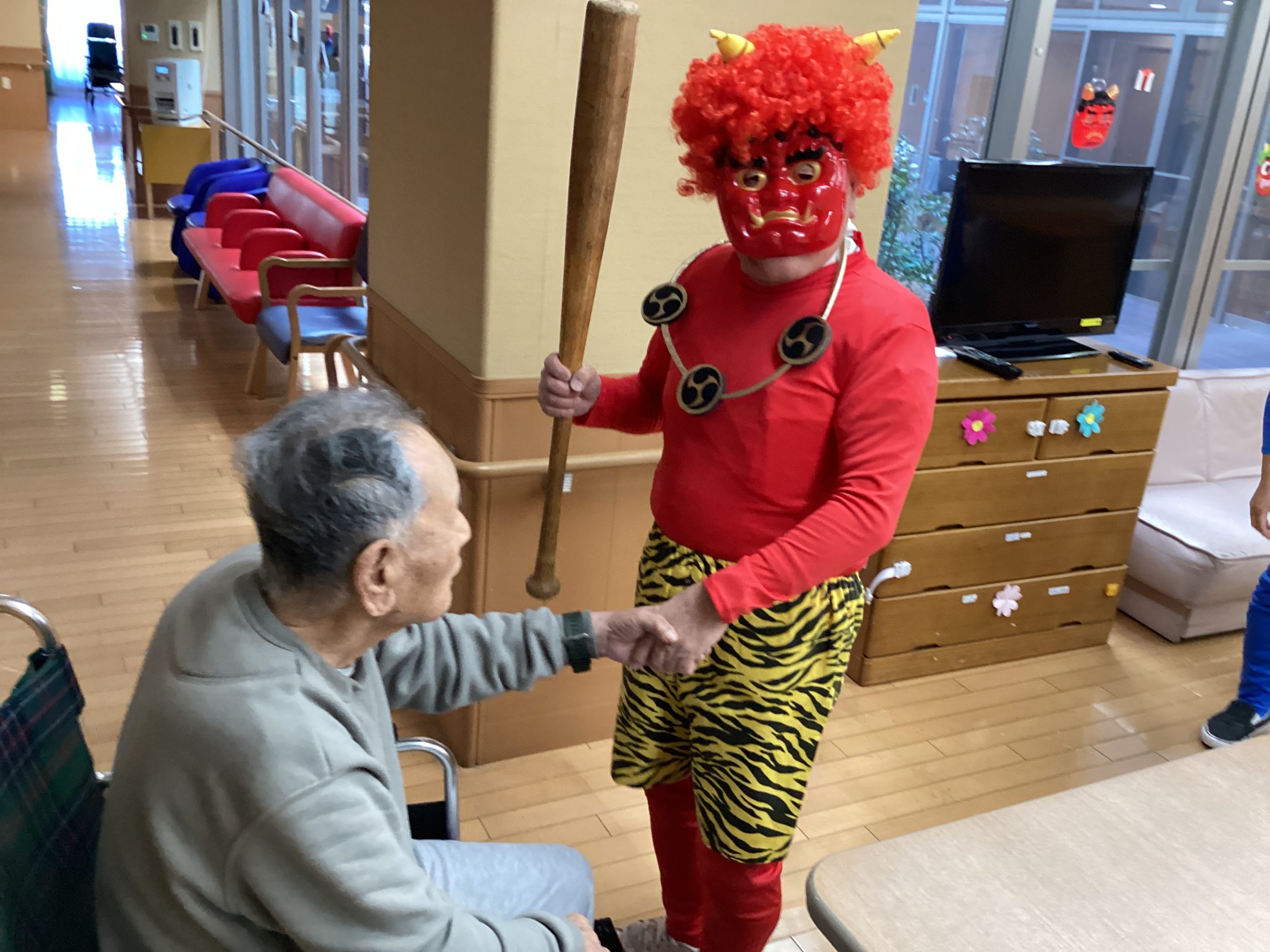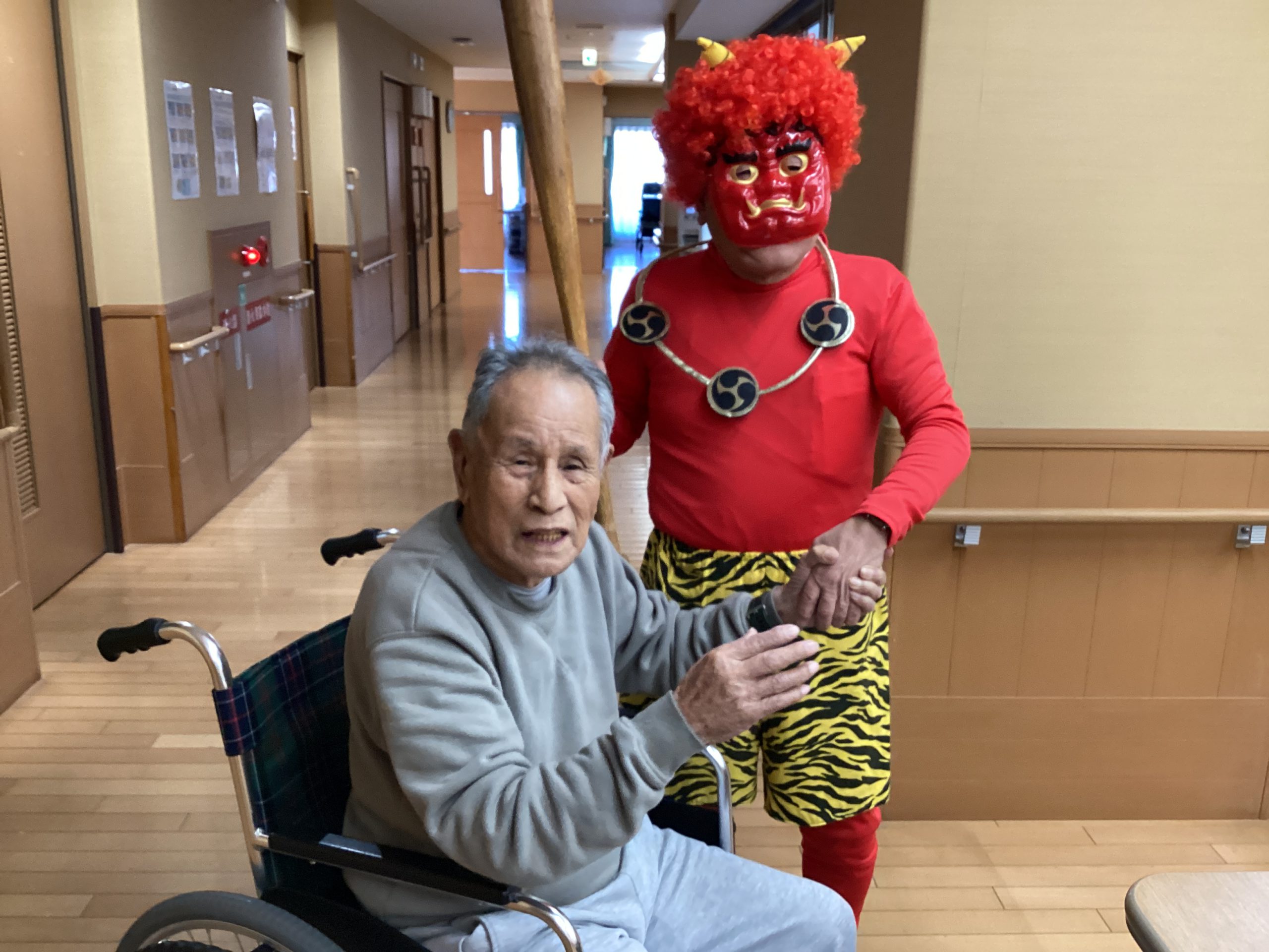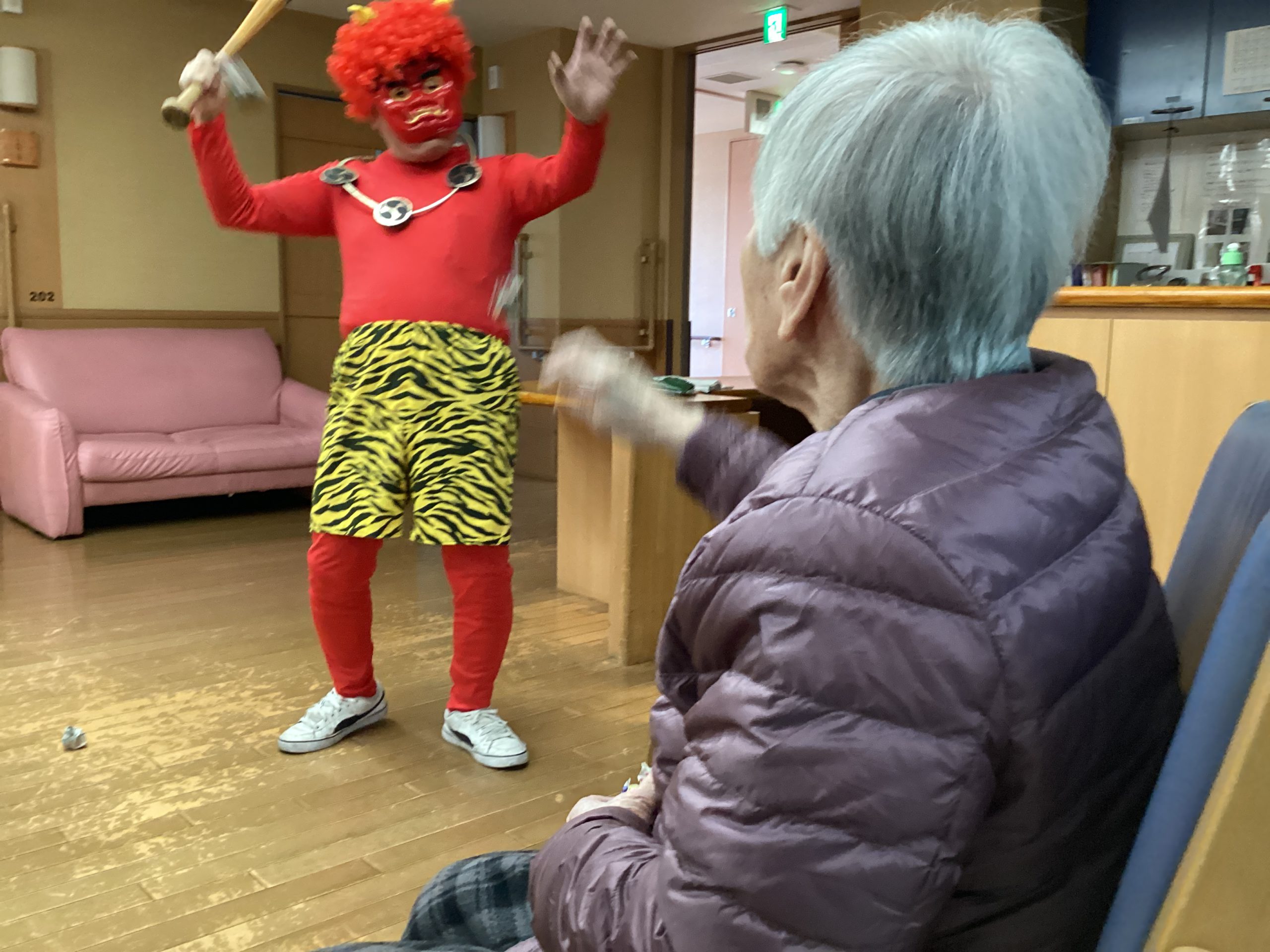 福を入れ込め~~ということで、ご利用者様にも豆まきをして頂きました👹