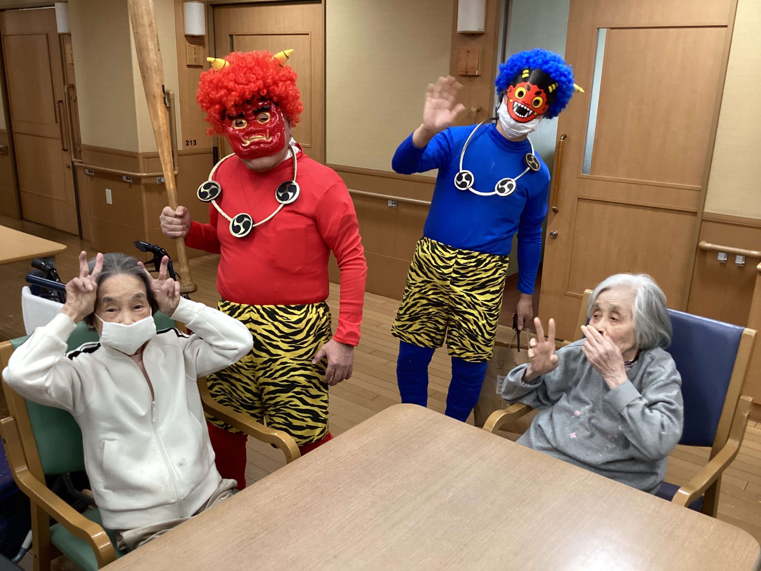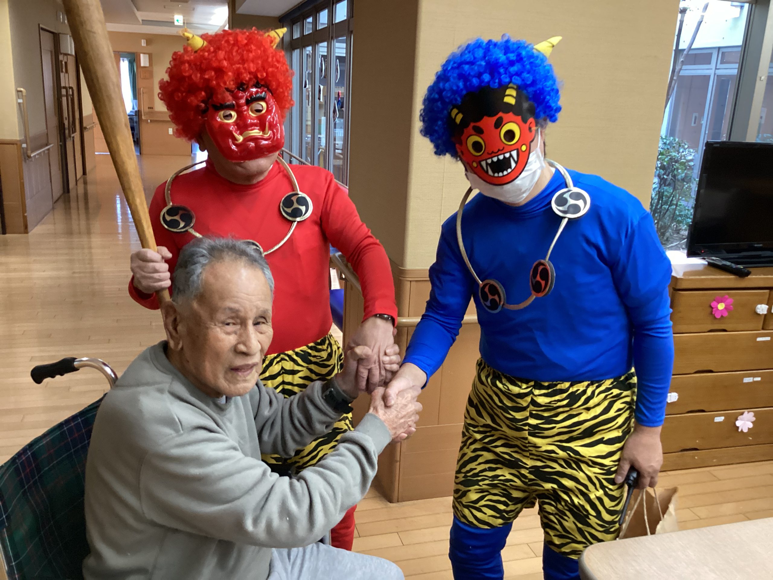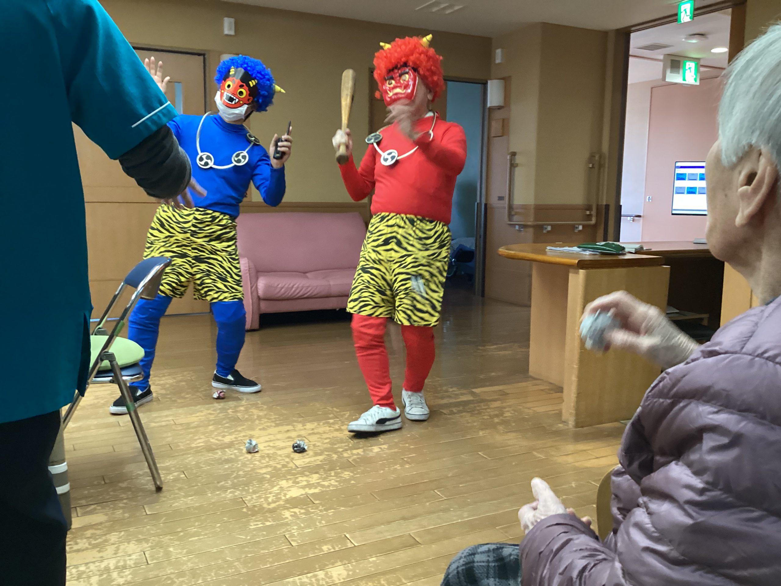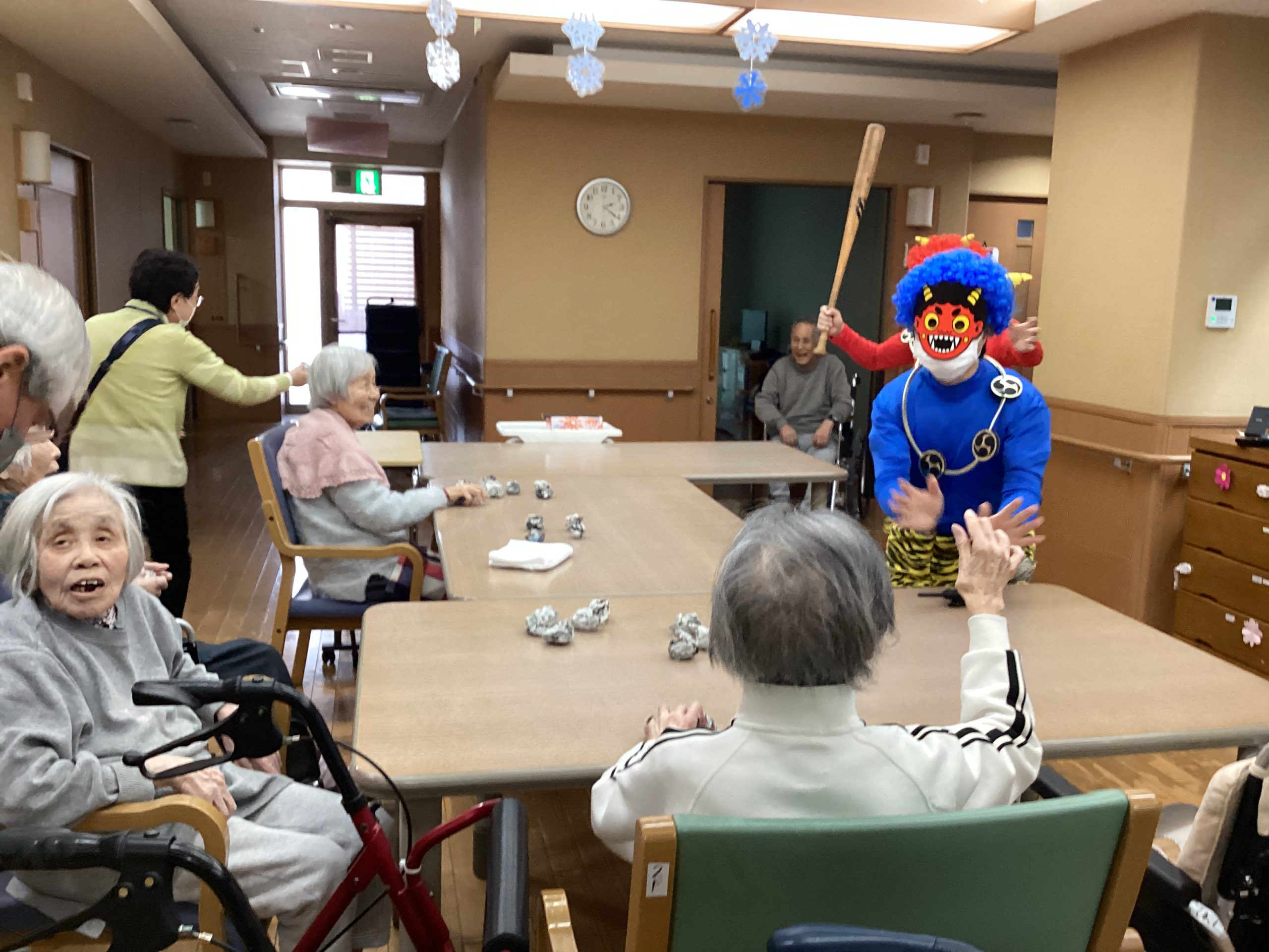 福を入れ込め~~ということで、ご利用者様にも豆まきをして頂きました👹