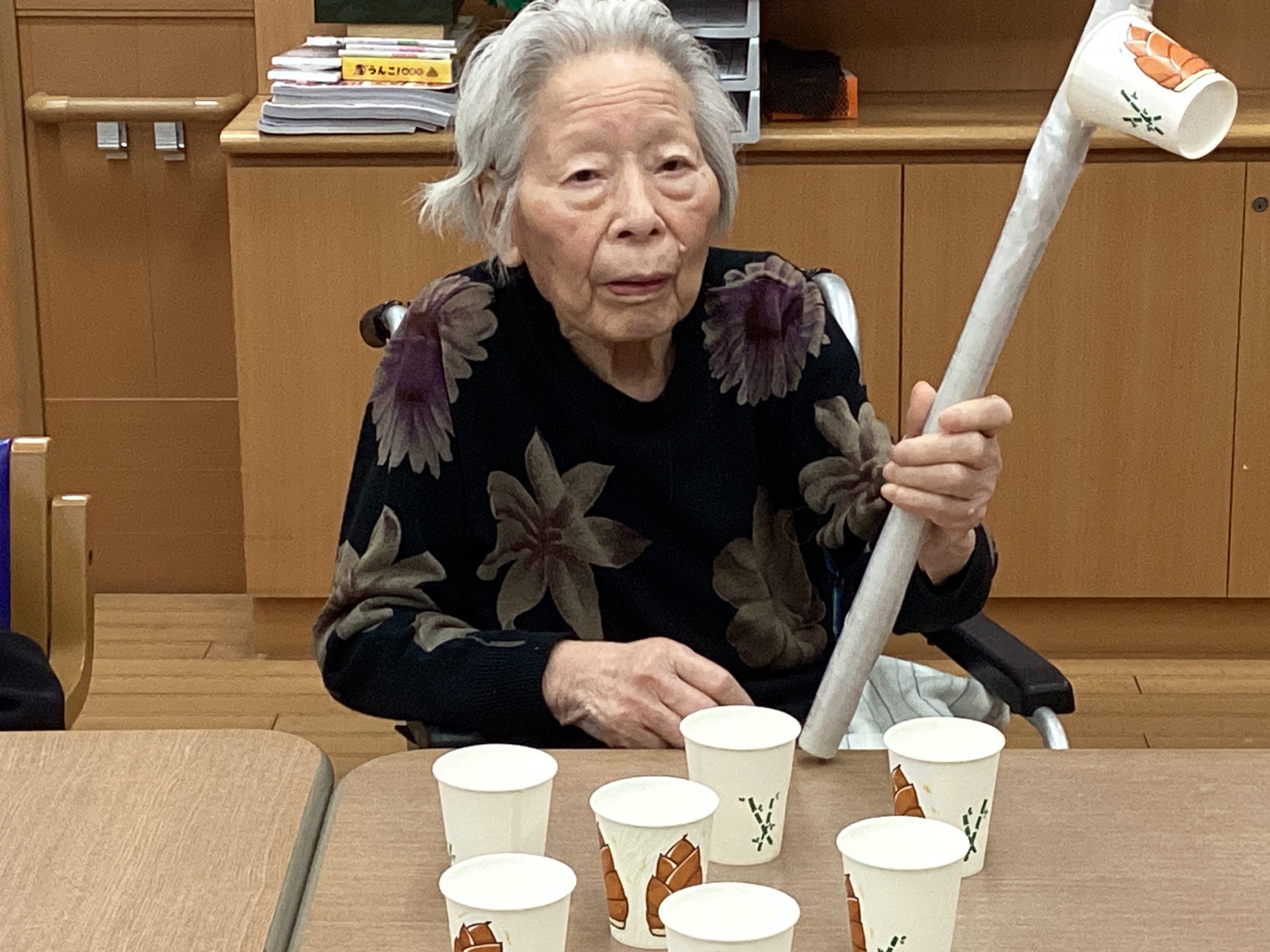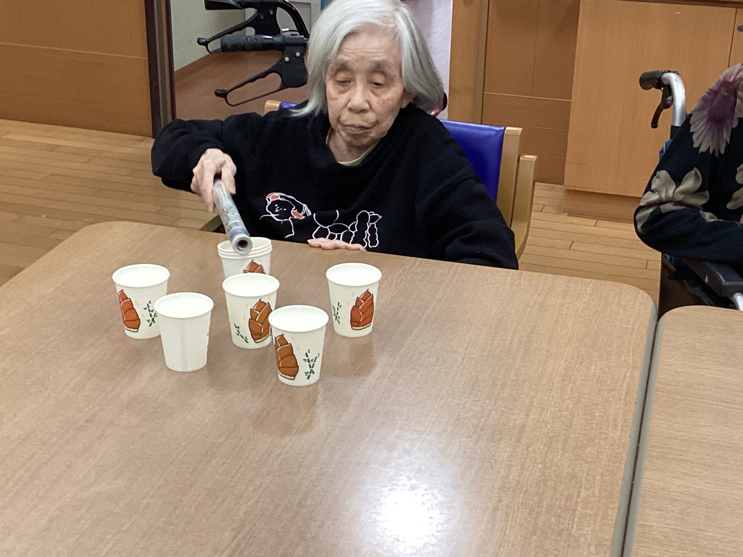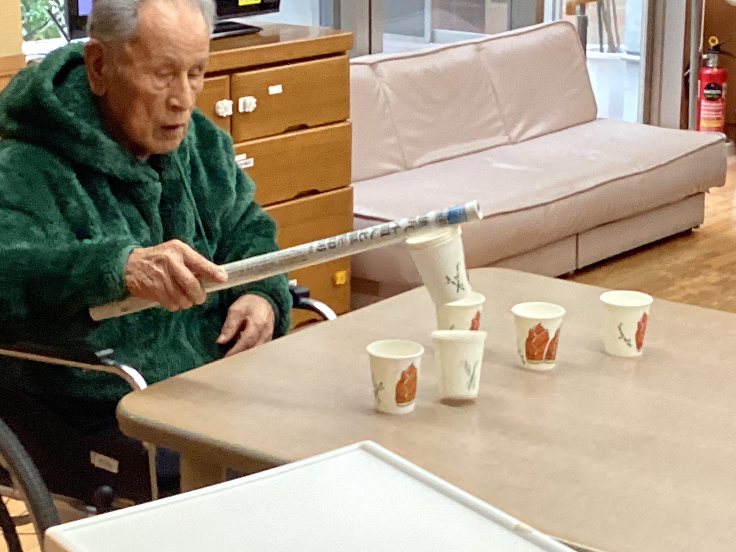 紙コップをうまく重ねれるか!というレクになっております🎶