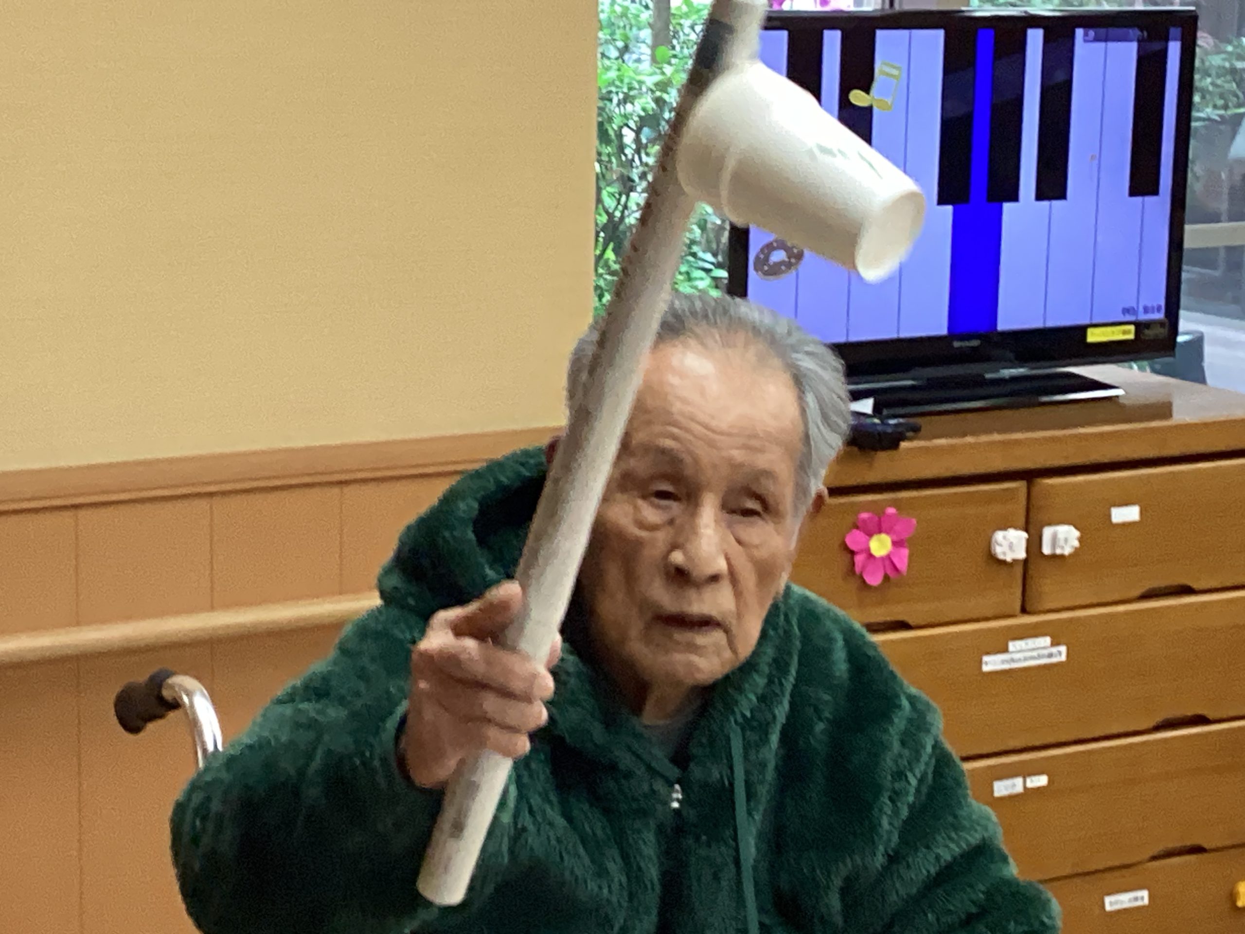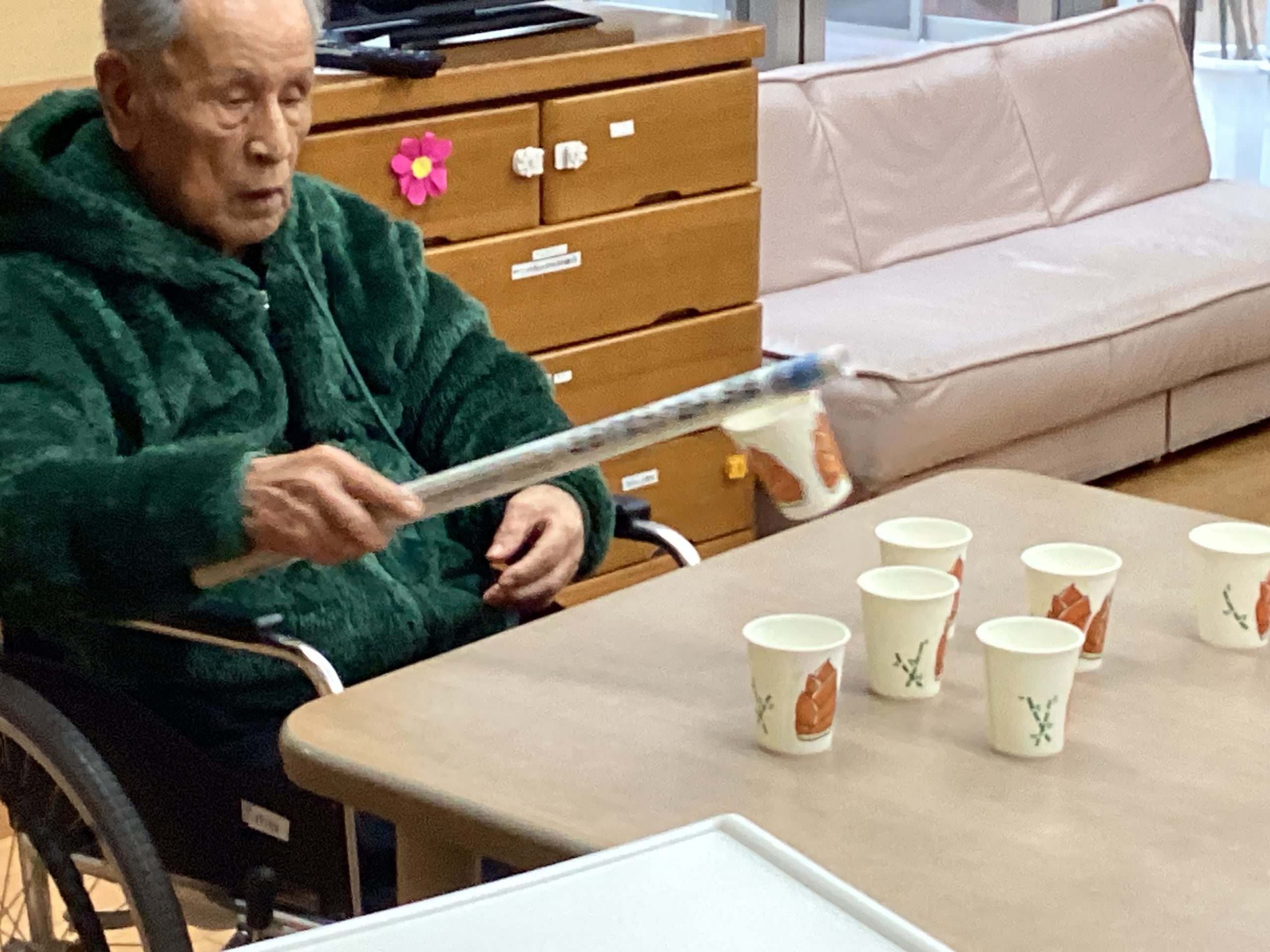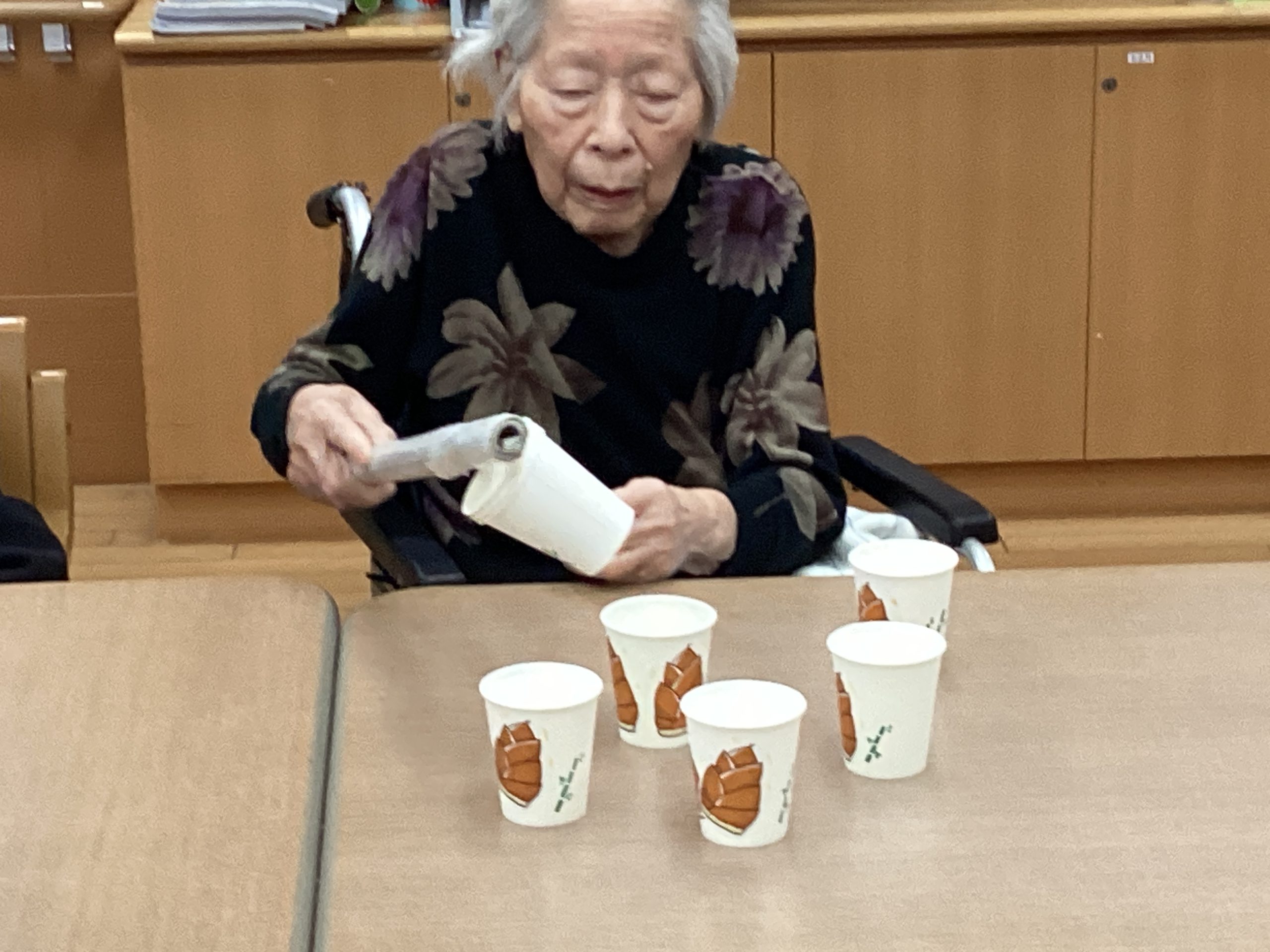 紙コップをうまく重ねれるか!というレクになっております🎶