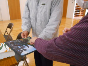 当日は比較的寒さもマシな穏やかな午後で、いつもと変わらず皆さま少し早めに来られ、開始時間前から作品作りを進められ、黙々と作品完成に向けて取り組まれておられました。