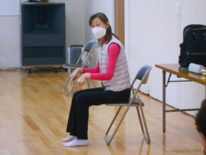 講師は、いつも楽しく体操される、健康運動実践指導者の前田真理子先生です。前田先生は身体を動かすときに筋肉や骨格がどのように関係しているのか、運動をすることでどのような効果があるかなどわかりやすく解説してくださいます。今回は『しっかりと身体を起こす』ための運動メニューを行ってくださいました。