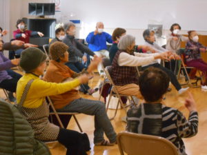 御厨「楽らく体操」は14時からの1回開催で行っており、今回も感染症予防の観点から三密を避けるために、窓の開放、入館時の検温、消毒、参加者間の距離確保などをしっかりと行いながら開催させて頂きました。