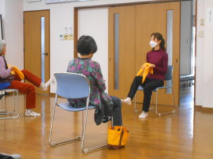 講師は、健康運動実践指導者の前田真理子先生です。いつも楽しく分かりやすいご指導で、身体を動かす際の姿勢の大切さや注意点について丁寧に教えてくださいます。今回はフェイスタオルを用いた運動メニューを実施しました。