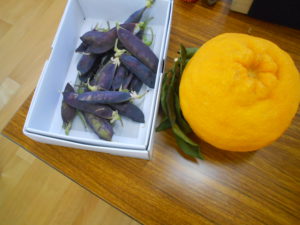 会場には、春の訪れを感じさせるユニークな「ツタンカーメンのそらまめ」や「三宝柑」、「椿の実」などが並びます。