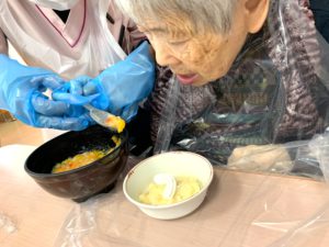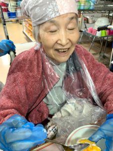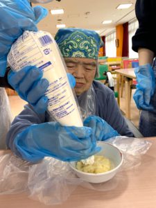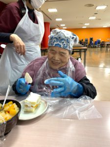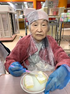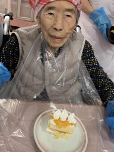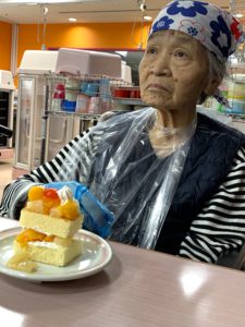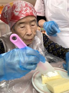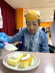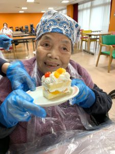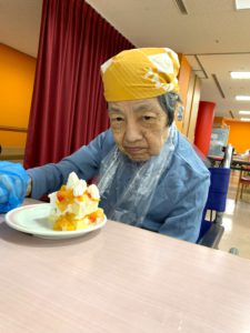 職員も少しお手伝いさせてもらいながらクリームをたっぷり塗ってもらい、フルーツもたくさんトッピングしていただきました😆💖