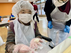 また丸める作業ができる方には、出来上がった餅を丸めて頂きました