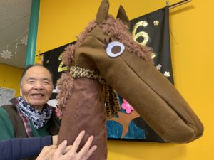 アーバンケア島之内特養です。今年の干支、午と一緒に写真を撮りました。