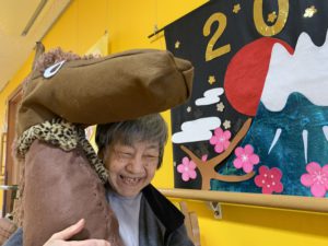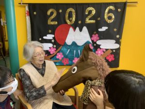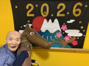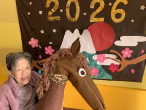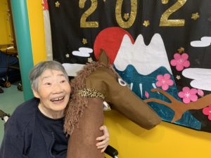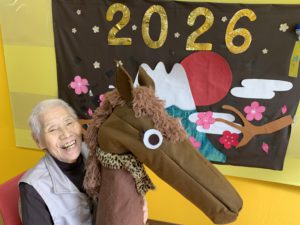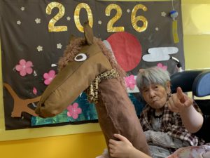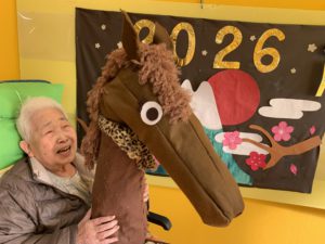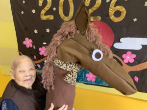 アーバンケア島之内特養です。今年の干支、午と一緒に写真を撮りました。