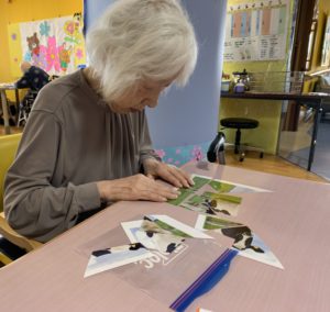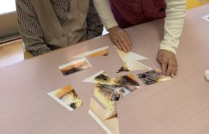 写真を見ながら「牛の頭……」と探してパズルを解いていく方もいれば、「この形はこっちの場所に合うはず」とピースの形から解いていく方もおられ、三者三様の解き方をされていました。