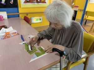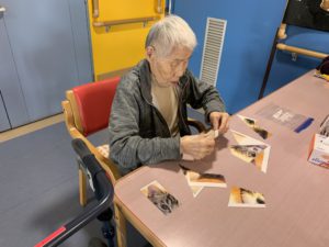 職員手作りのパズルですが、「意外と難しい」とのことで、真剣に取り組まれていました。