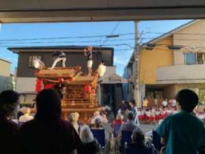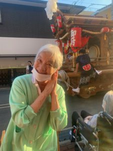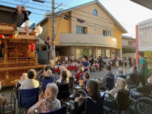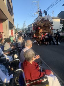 施設で過ごされているご利用者の皆様と一緒に、地域の保育園の子供達や、地域住民の方々と一緒にだんじりを見学しました!!