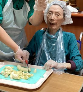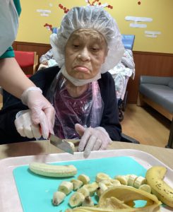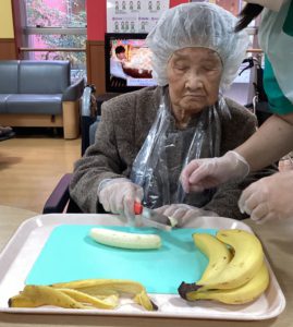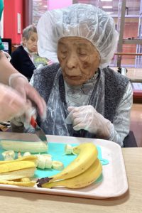 トッピングにするバナナも包丁を使って切っていきます🔪